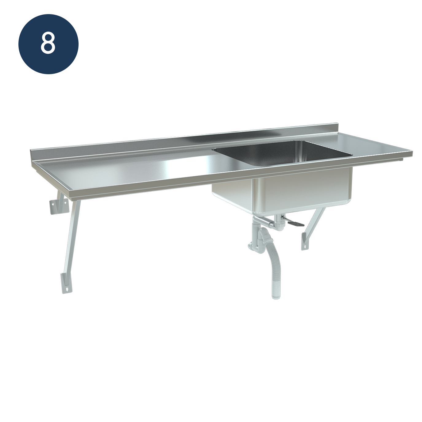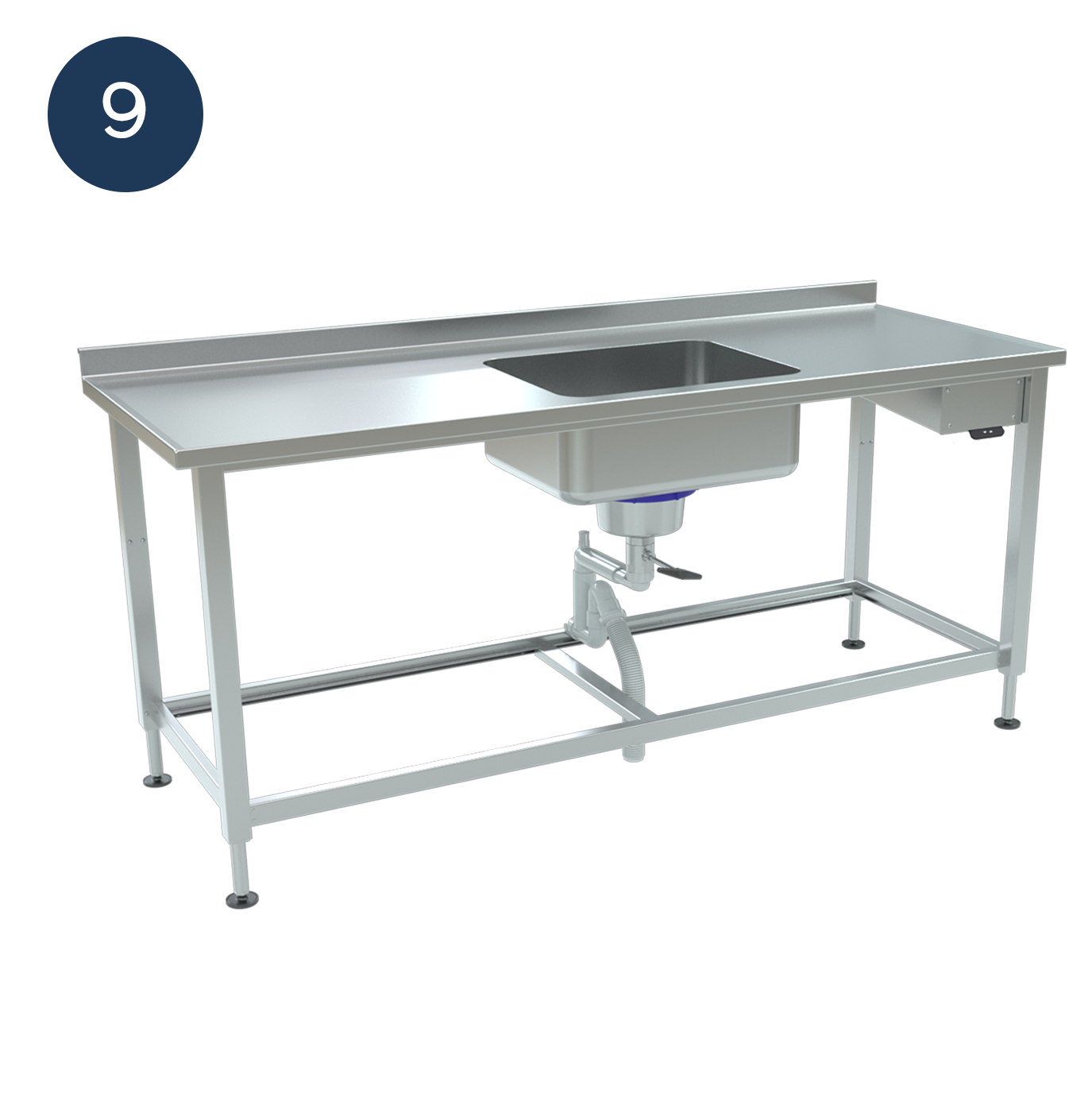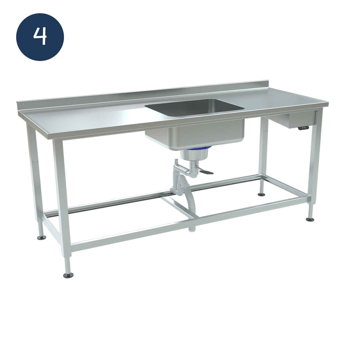 Våre vaskekummer har ikke overløp, noe som eliminerer vanlige hygienefeller og skaper et tryggere arbeidsmiljø nær arbeidsflatene.