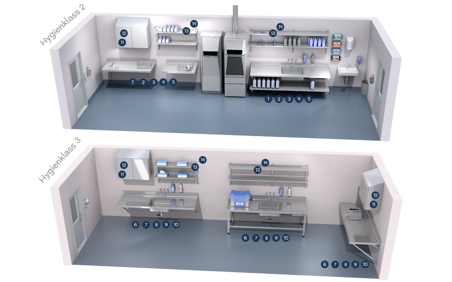 Sykehus er delt inn i fire hygieniklasser, fra 0 til 3, der klasse 3 innebærer de strengeste kravene. Våre produkter er designet for å oppfylle standarder i alle soner og bidrar til sikre og hygieniske arbeidsmiljøer.