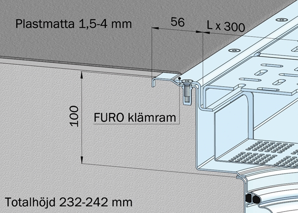 Rostfri gulvrenne for vaskerom, vaskestuer, grovvask og offentlige vaskerom. FURO 320 leder effektivt bort avløpsvann bak én eller flere vaskemaskiner og beskytter avløpssystemet med et løftbart lofilter.