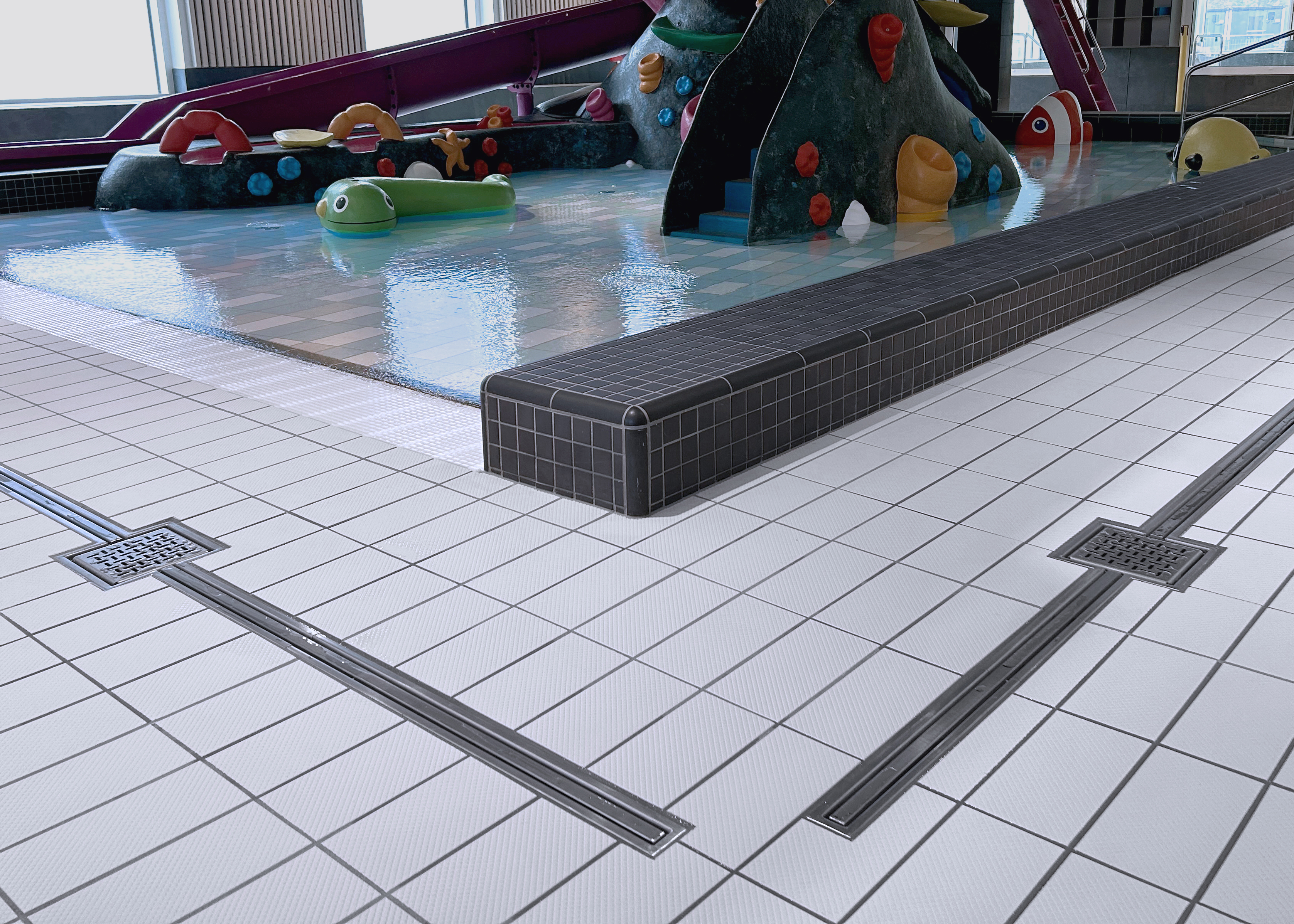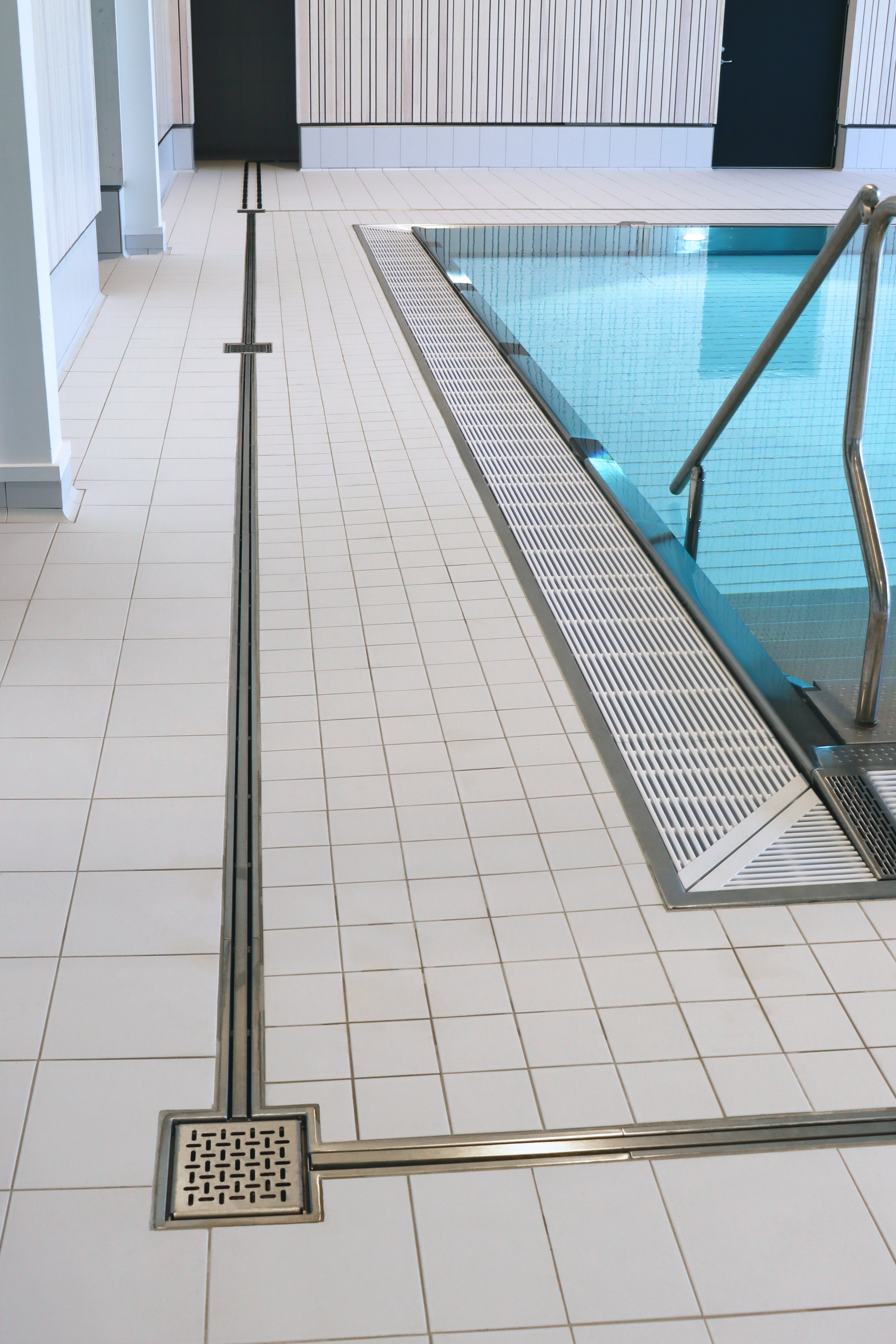 Smal och elegant golvränna i syrafast rostfritt stål (EN 1.4404), särskilt utvecklad för badhus, duschar, omklädningsrum samt områden runt bassänger och pooler. Genom ett modulsystem erbjuder den stor flexibilitet och kan anpassas efter verksamhetens specifika behov och förutsättningar.