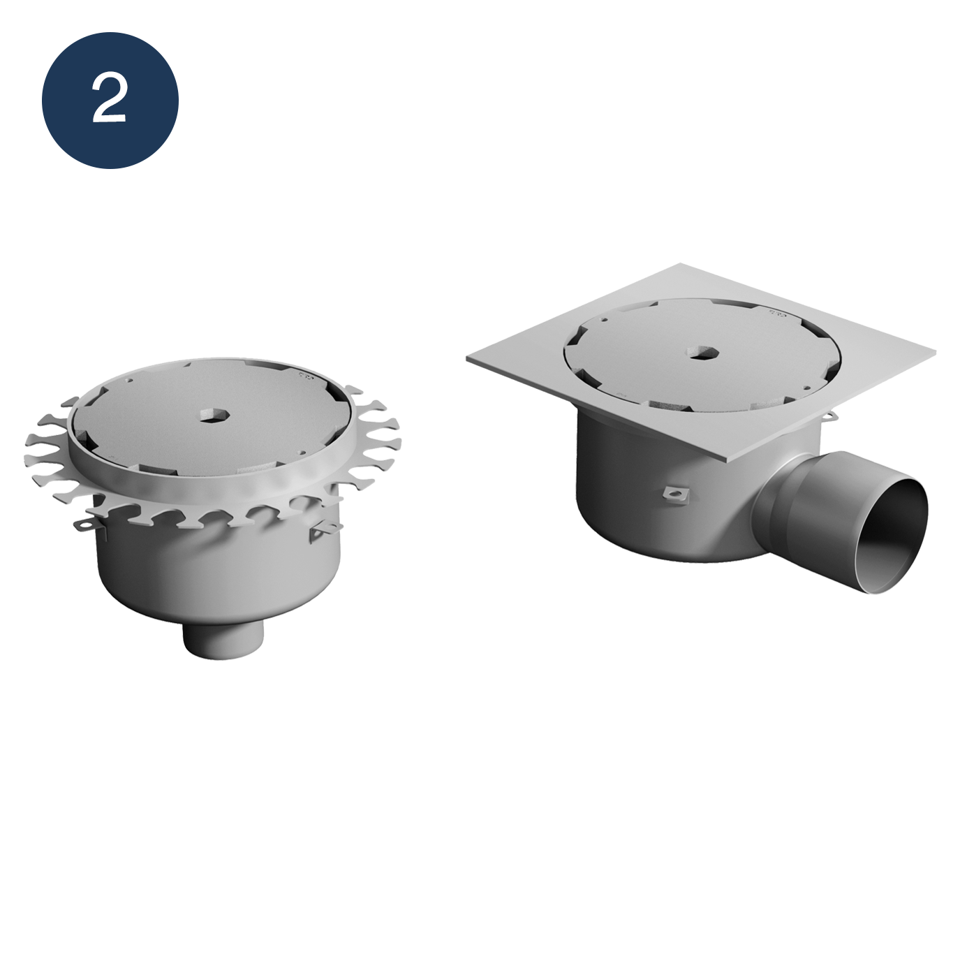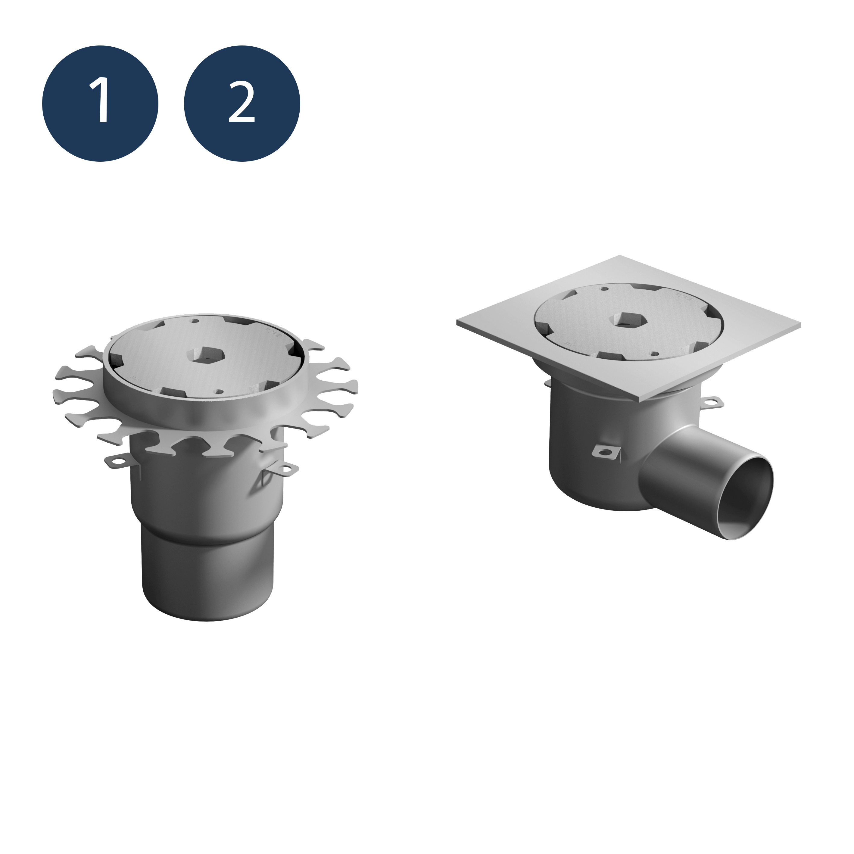 Våra bottenkopplade brunnar kan anpassas med långa utloppsrör för att förenkla installation genom bjälklag till nästa våning.