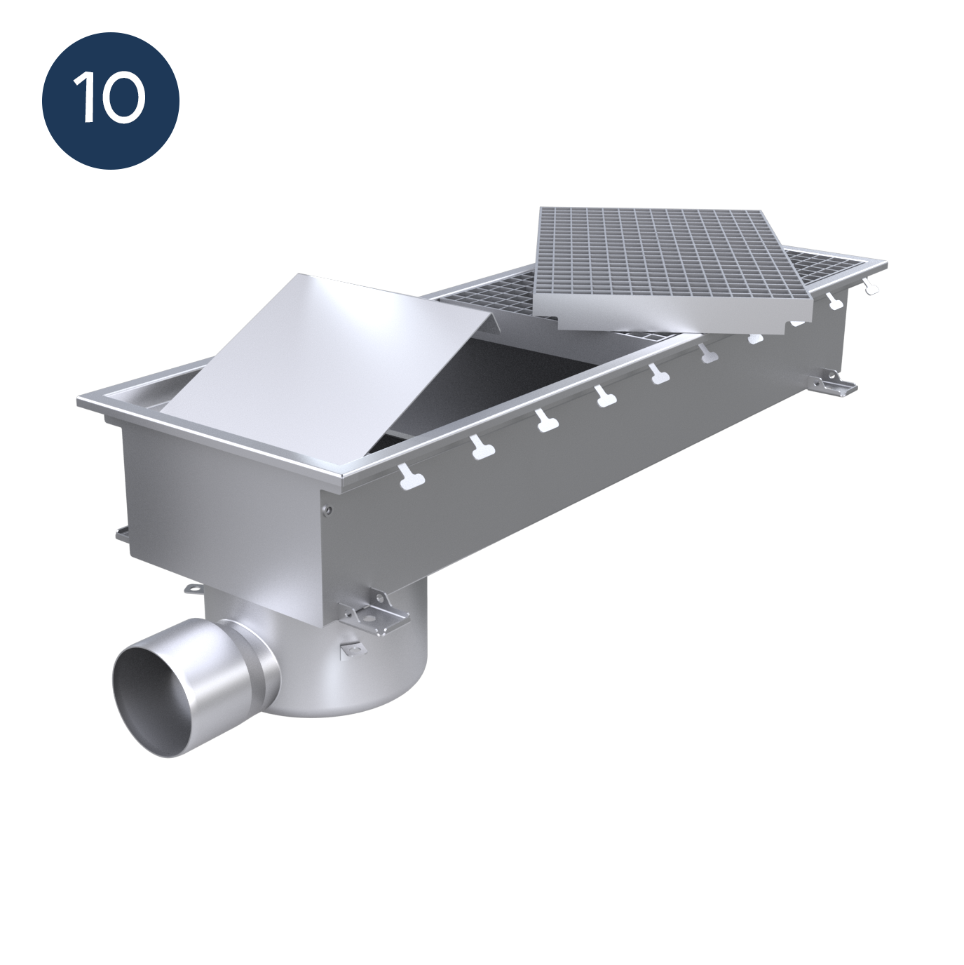Alla våra rännor kan anpassas som avdunstningsrännor utan utlopp, där smältvatten avdunstar utan behov av oljeavskiljare.
