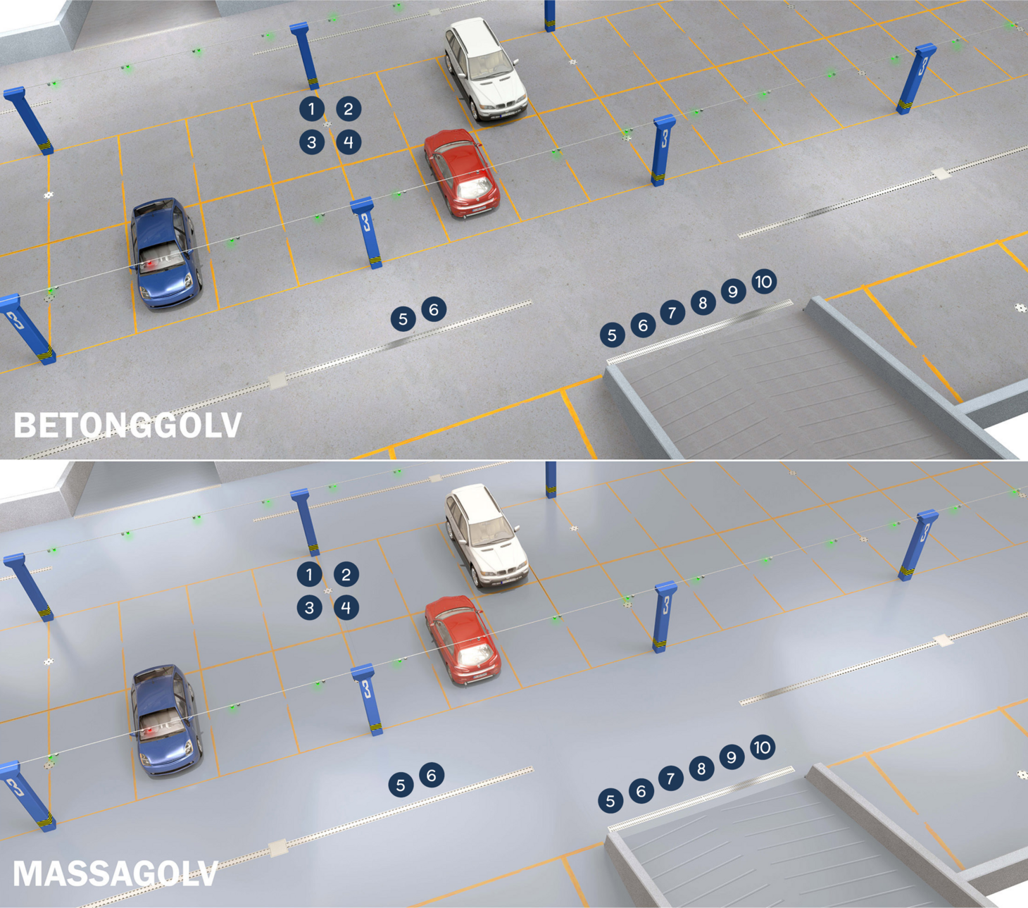 Rekommenderade produkter vid betong- och massagolv: