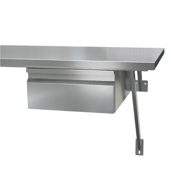 Rostfri underhylla med uppvikt bakkant och nedvikta sidor samt framkant.